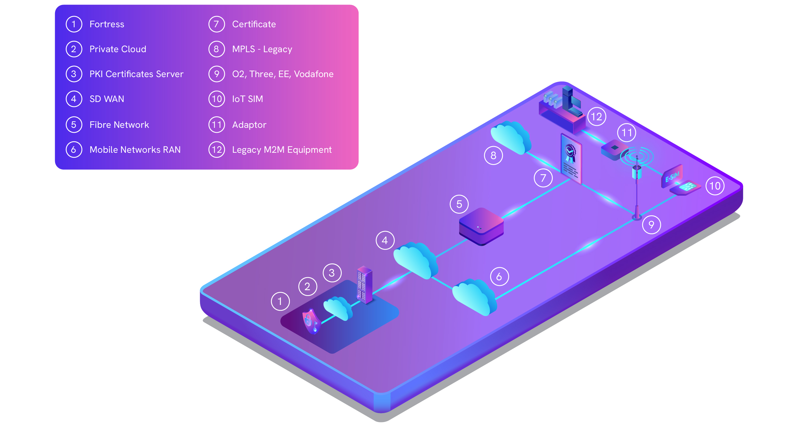 | CPE | Legacy CPE migrated to SD-WAN; adaptors provide copper/M2M emulation |